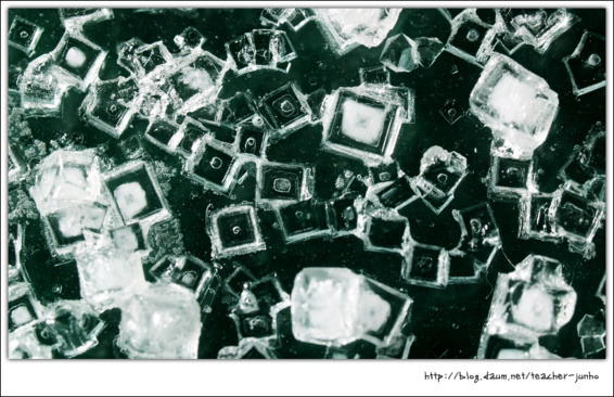 for "황산구리 결정 : 결정 관찰 : 황산구리 결정, 백반 결정, 소금 결정 (매크로촬영)"